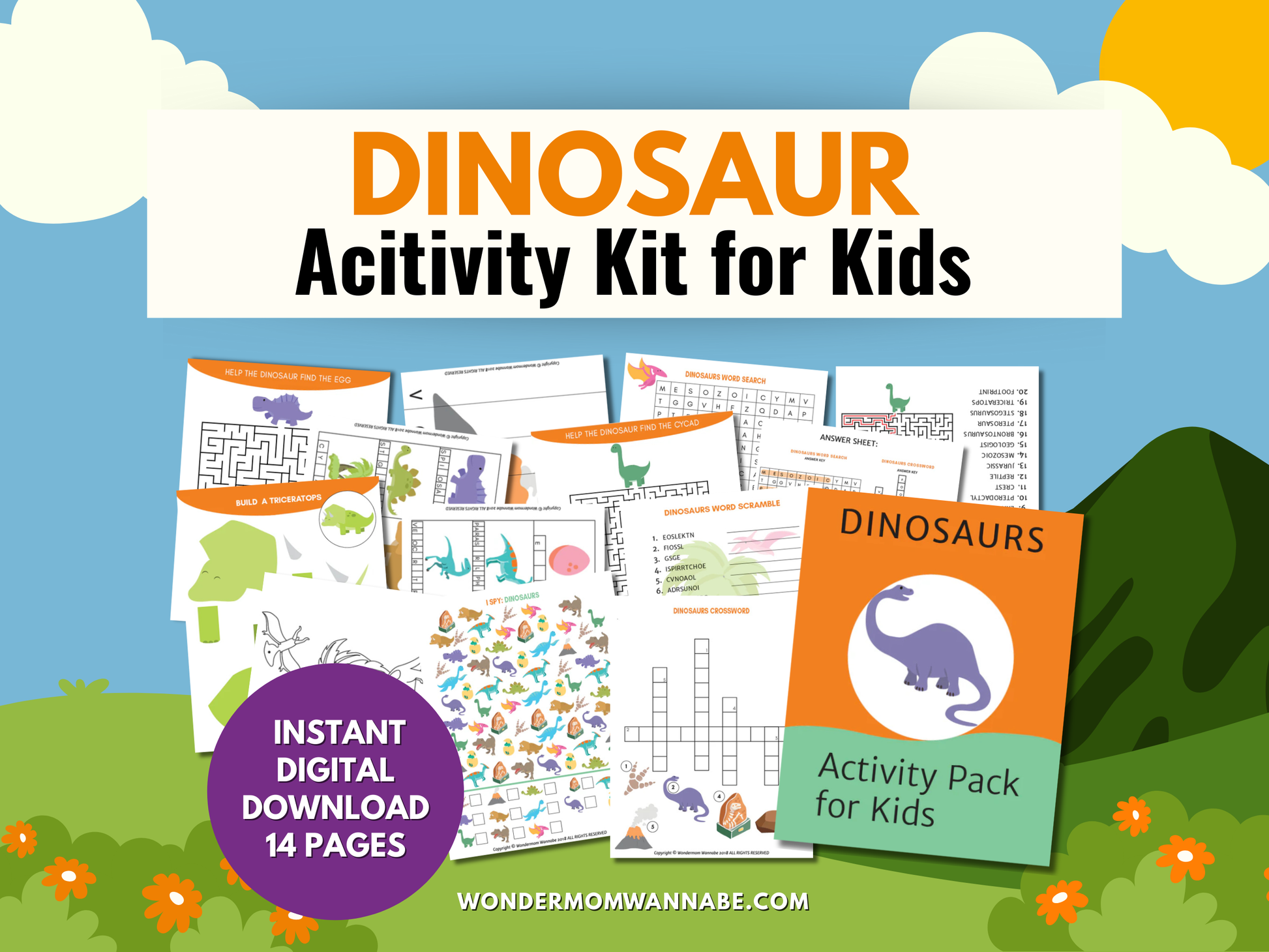 Dinosaurs Fun Pack for Kids – Printable Dinosaur Games, Puzzles, Crafts & Prehistoric Activities