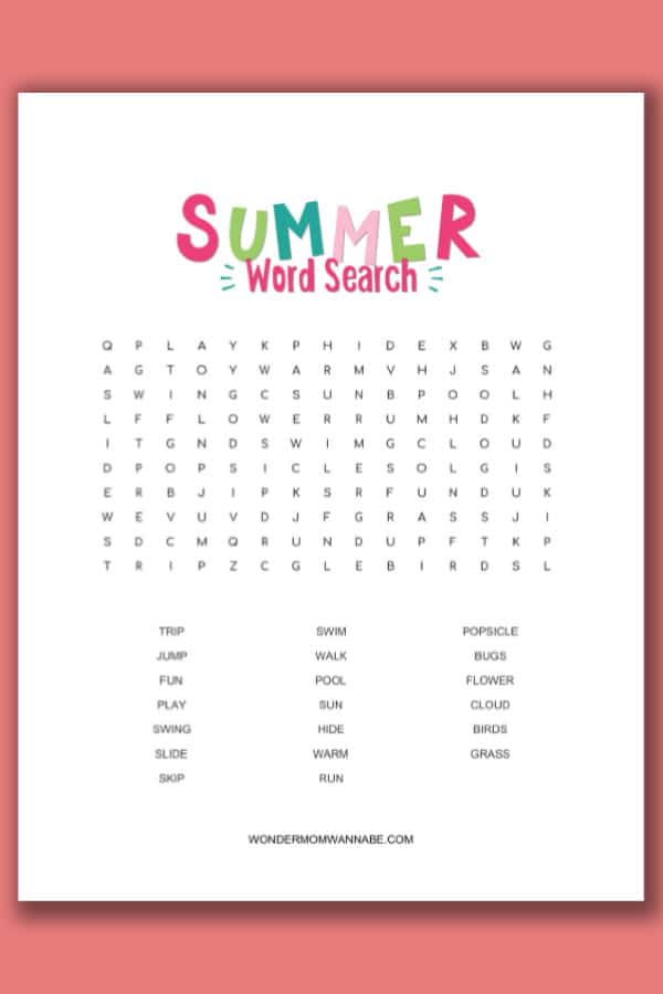 Find more information on how to use this printable here: https://wondermomwannabe.com/summer-word-search-for-kids/